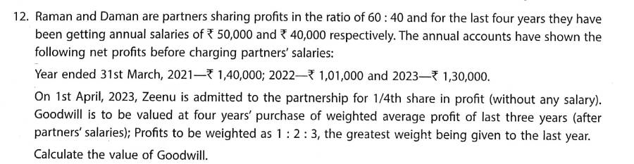 Solution of Question Number 12 Goodwill TS Grewal 2023-24 Edition [ISC Board]