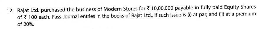 Solution of Question Number 12 Issue of Shares TS Grewal 2023-24 Edition [ISC Board]