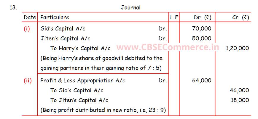 Solution of Question Number 13 Retirement of Partner TS Grewal 2023-24 Edition [ISC Board]
