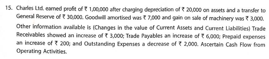 Here is the Solution of Q 15 Cash Flow Statements TS Grewal Class 12 ISC Board Accountancy Book 2023-24 Edition.