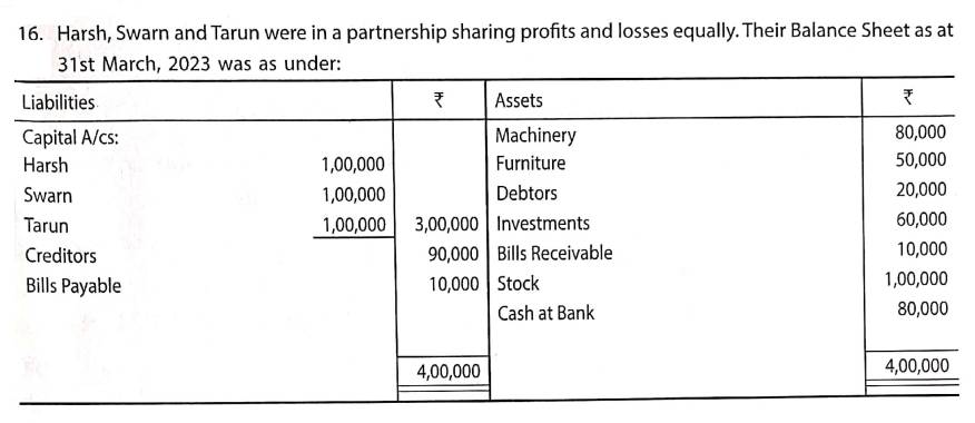 Solution of Question Number 16 Dissolution of a Partnership Firm TS Grewal 2023-24 Edition [ISC Board]