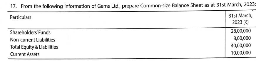 Solution of Question Number 17 Comparative Statements and Common-Size Statements TS Grewal 2023-24 Edition [ISC Board]
