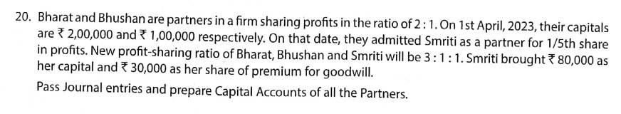 Here is the Solution of Q 20 Admission of Partner TS Grewal Class 12 ISC Board Accountancy Book 2023-24 Edition.