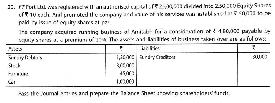 Solution of Question Number 20 Issue of Shares TS Grewal 2023-24 Edition [ISC Board]