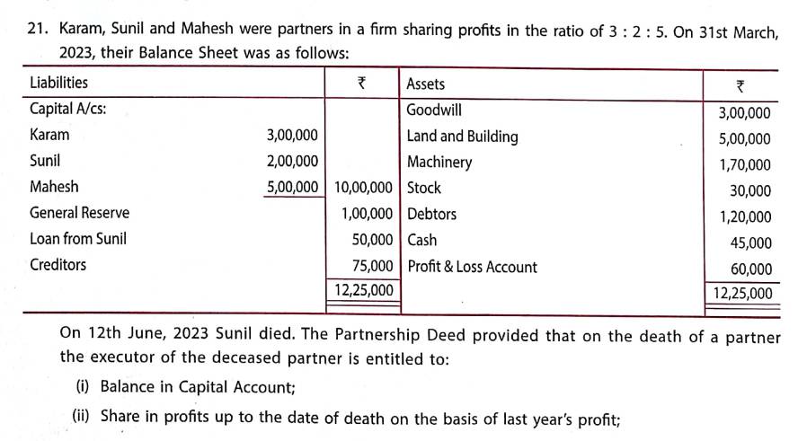 Solution of Question Number 21 Death of a Partner TS Grewal 2023-24 Edition [ISC Board]