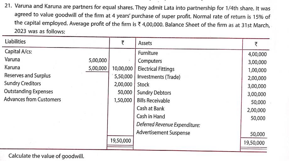 Here is the Solution of Q 21 Goodwill TS Grewal Class 12 ISC Board Accountancy Book 2023-24 Edition.