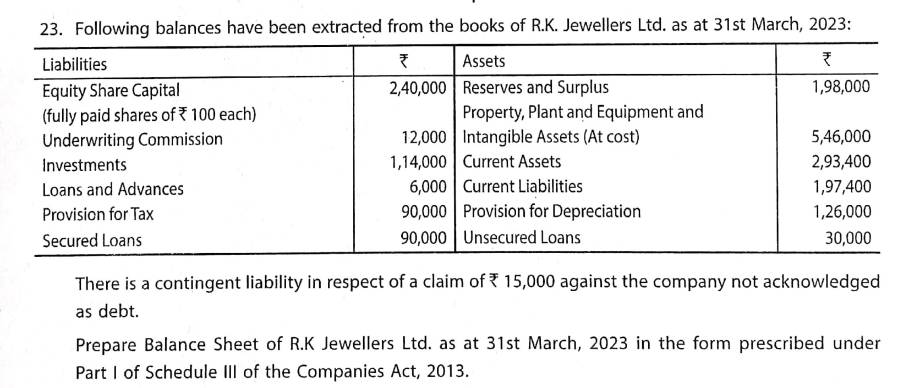 Here is the Solution of Q 23 Final Accounts of Companies-Application TS Grewal Class 12 ISC Board Accountancy Book 2023-24 Edition.