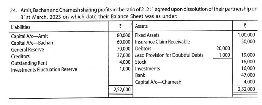 Solution of Question Number 24 Dissolution of a Partnership Firm TS Grewal 2023-24 Edition [ISC Board]