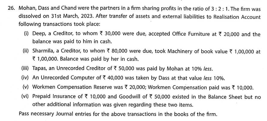 Solution of Question Number 26 Dissolution of a Partnership Firm TS Grewal 2023-24 Edition [ISC Board]