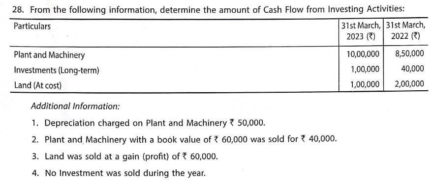 Here is the Solution of Q 28 Cash Flow Statements TS Grewal Class 12 ISC Board Accountancy Book 2023-24 Edition.