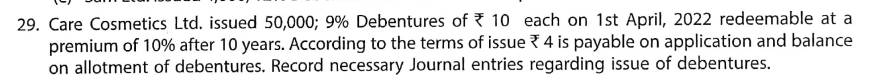 Solution of Question Number 29 Issue of Debentures TS Grewal 2023-24 Edition [ISC Board]