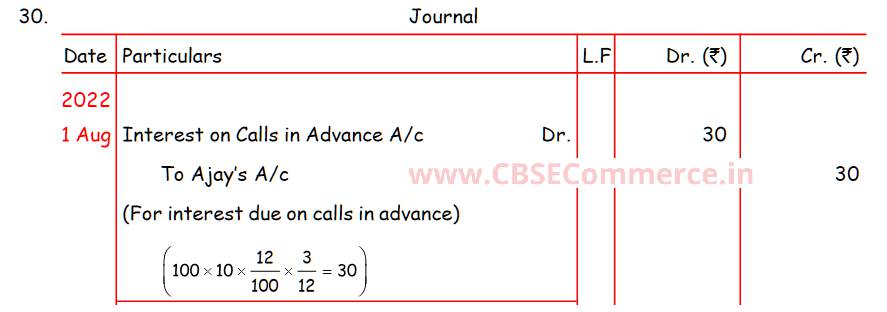 Solution of Question Number 30 Issue of Shares TS Grewal 2023-24 Edition [ISC Board]