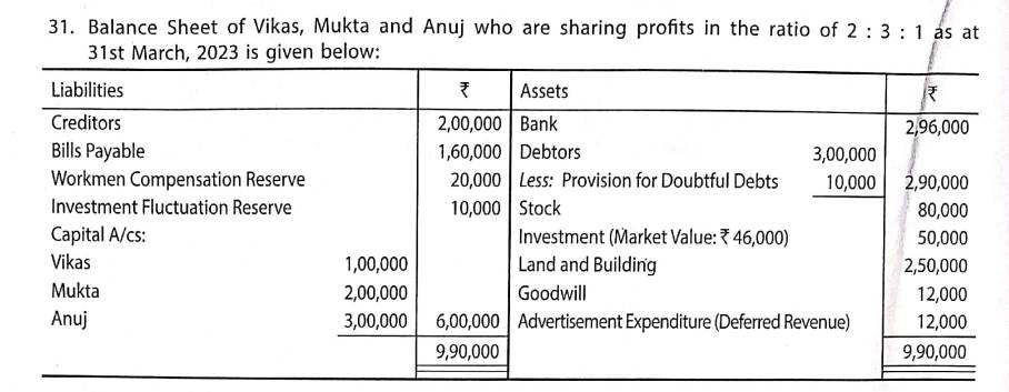 Solution of Question Number 31 Retirement of Partner TS Grewal 2023-24 Edition [ISC Board]