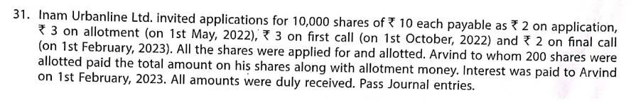 Solution of Question Number 31 Issue of Shares TS Grewal 2023-24 Edition [ISC Board]