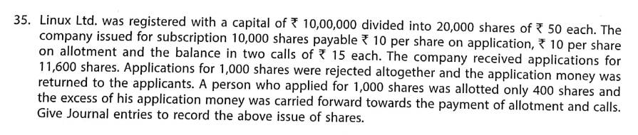 Solution of Question Number 35 Issue of Shares TS Grewal 2023-24 Edition [ISC Board]