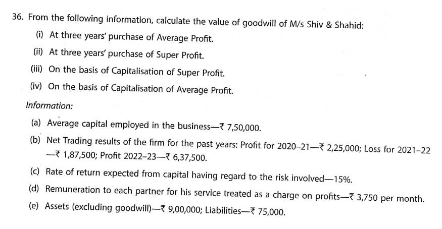 Here is the Solution of Q 36 Goodwill TS Grewal Class 12 ISC Board Accountancy Book 2023-24 Edition.