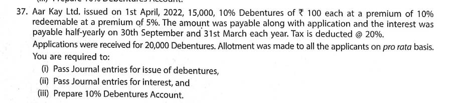 Solution of Question Number 37 Issue of Debentures TS Grewal 2023-24 Edition [ISC Board]