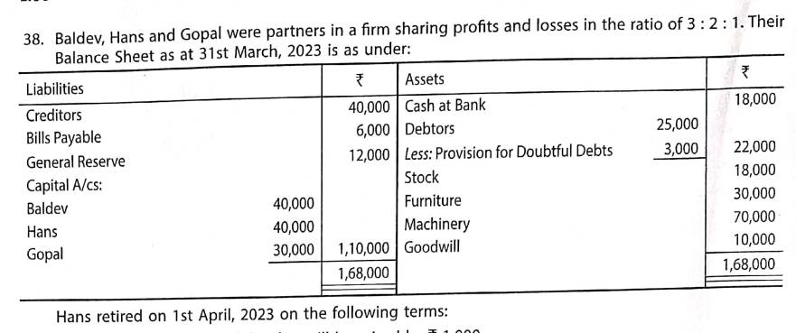 Here is the Solution of Q 38 Retirement of Partner TS Grewal Class 12 ISC Board Accountancy Book 2023-24 Edition.