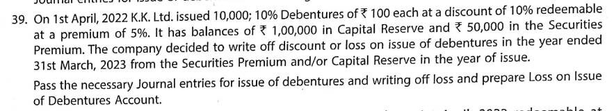 Here is the Solution of Q 39 Issue of Debentures TS Grewal Class 12 ISC Board Accountancy Book 2023-24 Edition.