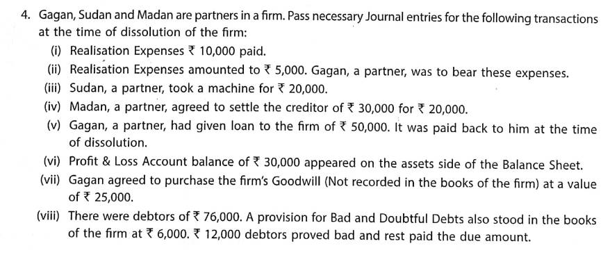 Solution of Question Number 4 Dissolution of a Partnership Firm TS Grewal 2023-24 Edition [ISC Board]