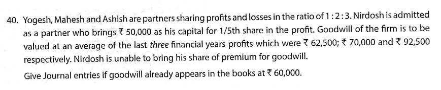 Here is the Solution of Q 40Â Admission of Partner TS Grewal Class 12 ISC Board Accountancy Book 2023-24 Edition.