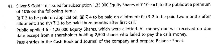 Solution of Question Number 41 Issue of Shares TS Grewal 2023-24 Edition [ISC Board]