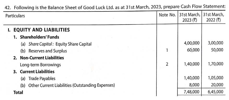 Solution of Question Number 42 Cash Flow Statements TS Grewal 2023-24 Edition [ISC Board]