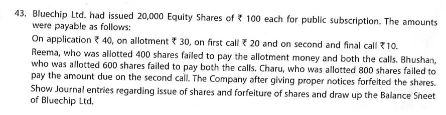 Here is the Solution of Q 43 Issue of Shares TS Grewal Class 12 ISC Board Accountancy Book 2023-24 Edition.