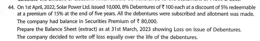 Solution of Question Number 44 Issue of Debentures TS Grewal 2023-24 Edition [ISC Board]