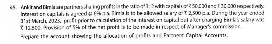 Here is the Solution of Q 45 Fundamentals of Partnership TS Grewal Class 12 ISC Board Accountancy Book 2023-24 Edition.