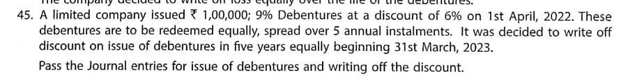 Here is the Solution of Q 45 Issue of Debentures TS Grewal Class 12 ISC Board Accountancy Book 2023-24 Edition.
