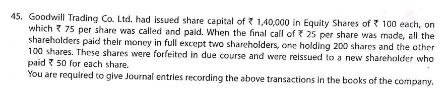 Solution of Question Number 45 Issue of Shares TS Grewal 2023-24 Edition [ISC Board]