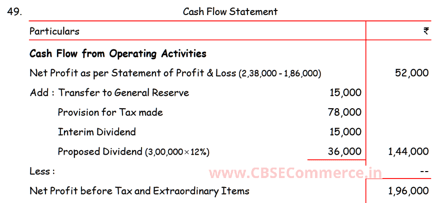 Here is the Solution of Q 49 Cash Flow Statements TS Grewal Class 12 ISC Board Accountancy Book 2023-24 Edition.