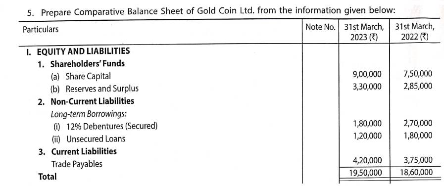 Solution of Question Number 5 Comparative Statements and Common-Size Statements TS Grewal 2023-24 Edition [ISC Board]