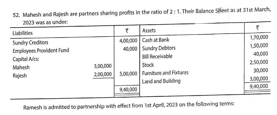 Here is the Solution of Q 52 Admission of Partner TS Grewal Class 12 ISC Board Accountancy Book 2023-24 Edition.