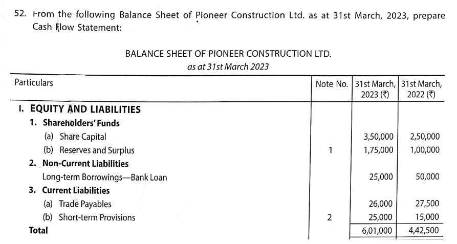 Here is the Solution of Q 52 Cash Flow Statements TS Grewal Class 12 ISC Board Accountancy Book 2023-24 Edition.