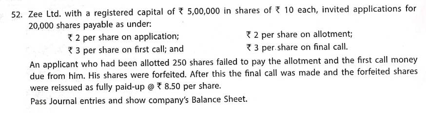 Solution of Question Number 52 Issue of Shares TS Grewal 2023-24 Edition [ISC Board]