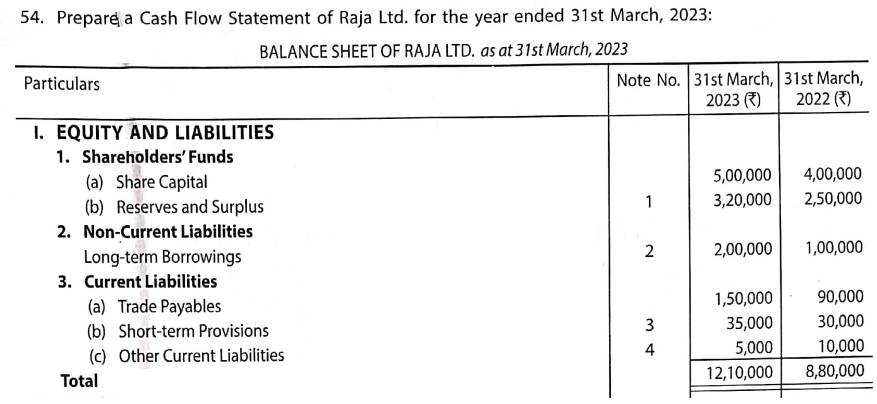Solution of Question Number 54 Cash Flow Statements TS Grewal 2023-24 Edition [ISC Board]