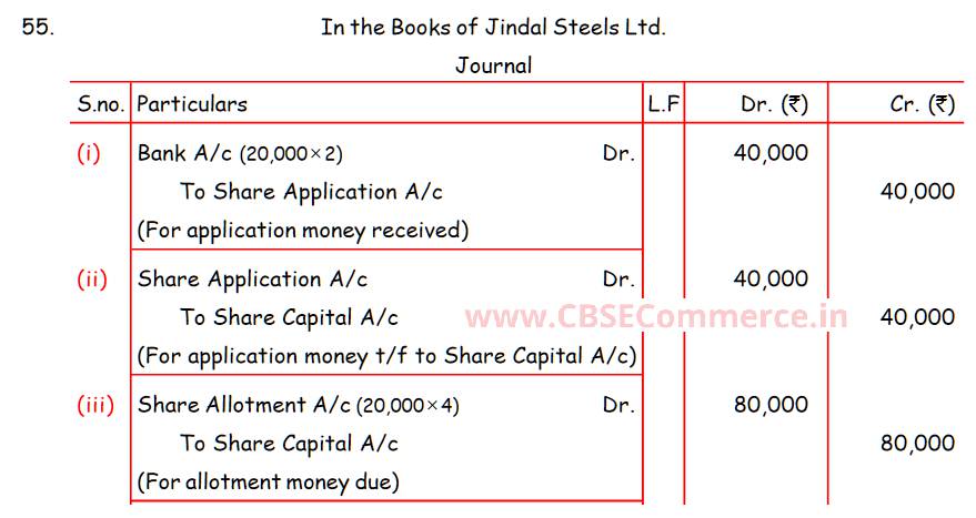 Solution of Question Number 55 Issue of Shares TS Grewal 2023-24 Edition [ISC Board]