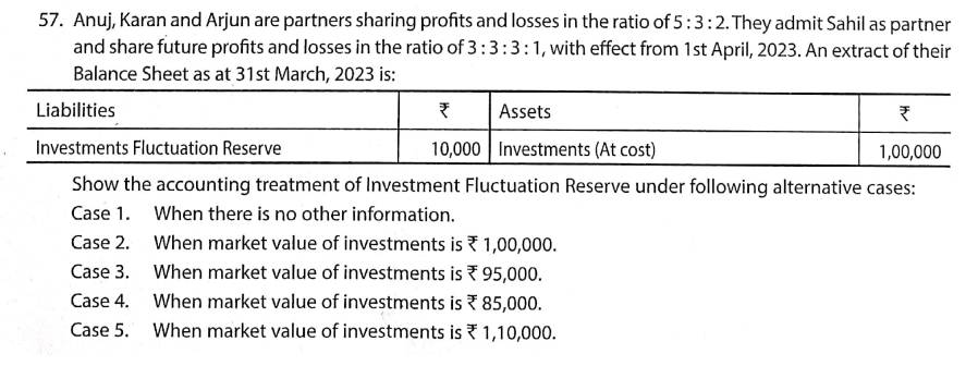 Here is the Solution of Q 57 Admission of Partner TS Grewal Class 12 ISC Board Accountancy Book 2023-24 Edition.