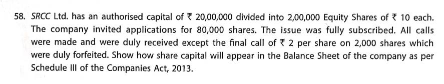 Solution of Question Number 58 Issue of Shares TS Grewal 2023-24 Edition [ISC Board]