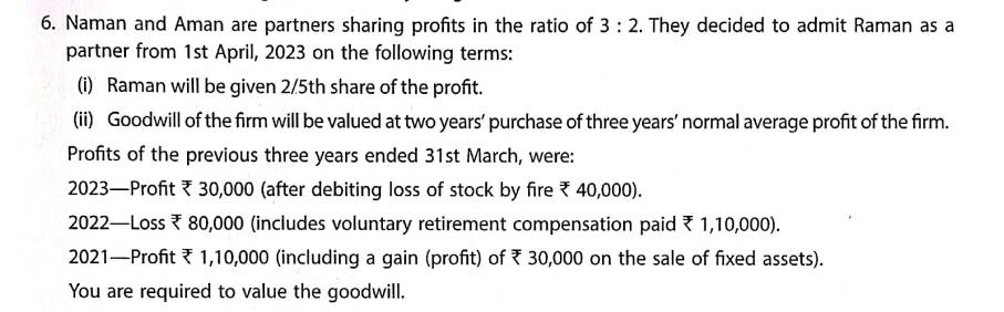 Here is the Solution of Q 6 Goodwill TS Grewal Class 12 ISC Board Accountancy Book 2023-24 Edition.