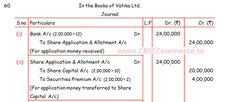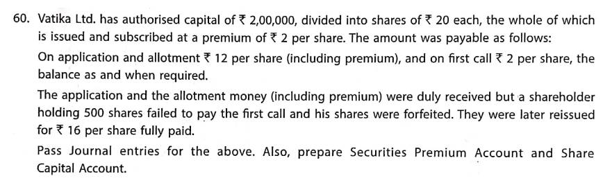 Solution of Question Number 60 Issue of Shares TS Grewal 2023-24 Edition [ISC Board]