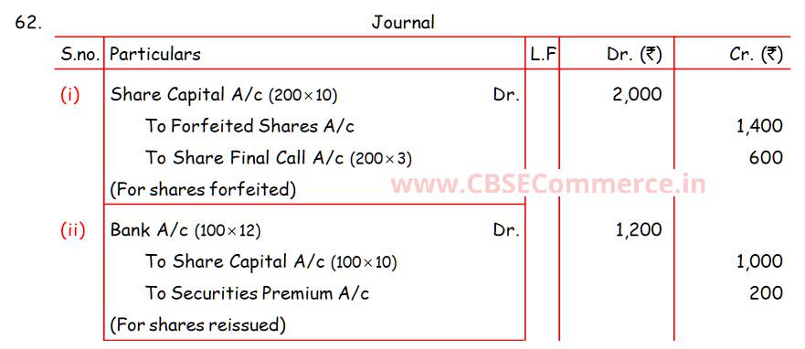 Solution of Question Number 62 Issue of Shares TS Grewal 2023-24 Edition [ISC Board]