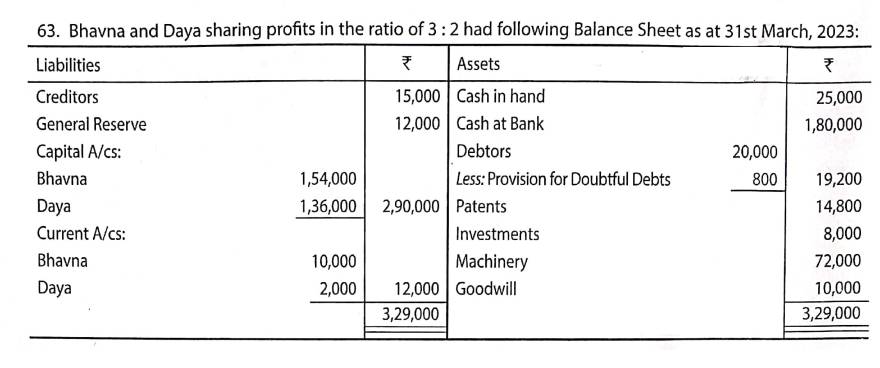 Here is the Solution of Q 63 Admission of Partner TS Grewal Class 12 ISC Board Accountancy Book 2023-24 Edition.