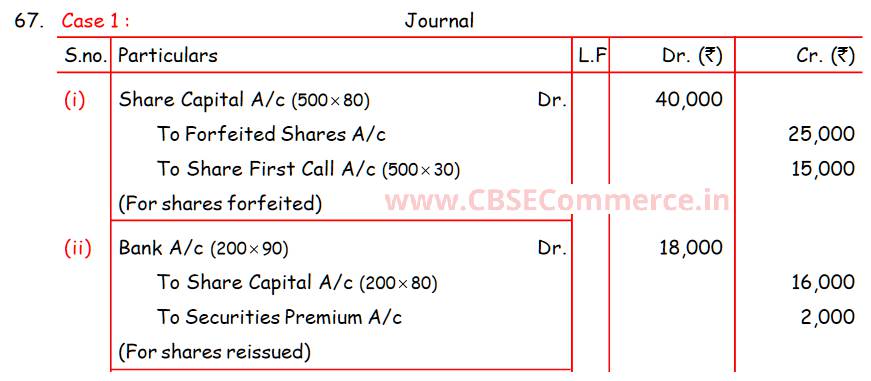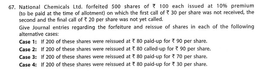 Solution of Question Number 67 Issue of Shares TS Grewal 2023-24 Edition [ISC Board]