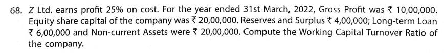 Here is the Solution of Q 68 Ratio Analysis TS Grewal Class 12 ISC Board Accountancy Book 2023-24 Edition.