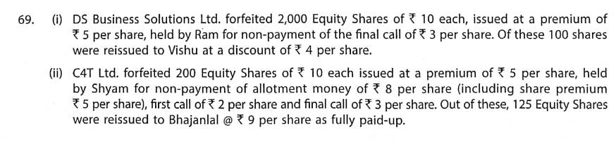 Solution of Question Number 69 Issue of Shares TS Grewal 2023-24 Edition [ISC Board]