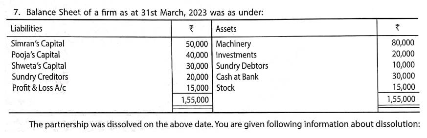 Solution of Question Number 7 Dissolution of a Partnership Firm TS Grewal 2023-24 Edition [ISC Board]