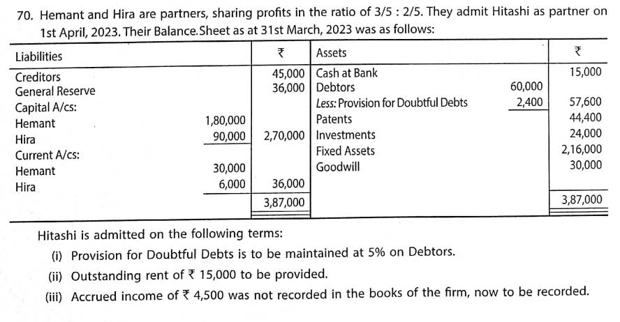Solution of Question Number 70 Admission of a Partner TS Grewal 2023-24 Edition [ISC Board]